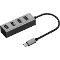 USB-C rozbočovač so 4 portami USB 3.0 s prenosovou rýchlosťou dát až 5Gbps a odolným hliníkovým telom. Tento USB rozbočovač rozšíri váš Notebook o ďalšie 4 porty USB na pripojenie ďalších zariadení, ako napríklad myši, klávesnice, externého pevného disku, jednotky flash a pod. Funkcia spätnej kompatibility umožňuje používať zariadenie s USB 2.0 alebo 1.1. Integrovaná prepäťová ochranňa zabezpečí Vaše zariadenie pred skratom.