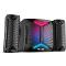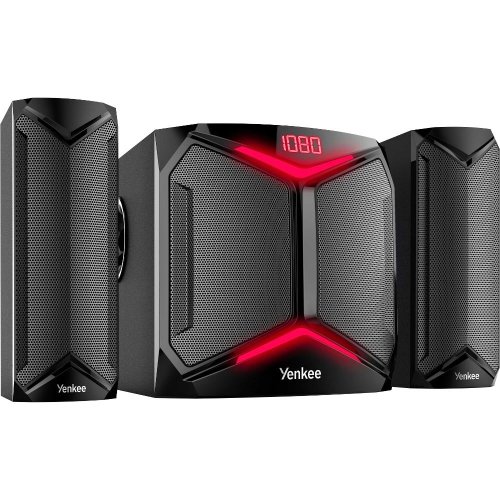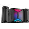 Multimediálny 2.1 reproduktorový systém Kompaktný a štýlový dizajn Pripojenie cez kábel alebo Bluetooth 50W, AUX, USB, SD card, Bluetooth 5.0, Remote controller, LED RGB backlight Vychutnajte si hudbu, hry alebo filmy a vylepšite zvukový zážitok pomocou multimediálneho 2.1 reproduktorového systému ponúkajúceho výkon 50W RMS. Vďaka impozantným možnostiam káblového a bezdrôtového pripojenia sú tieto reproduktory vhodné na použitie so smartphonmi, tabletmi, notebookmi, stolnými počítačmi, televízormi atď. Pre prehrávanie hudby uloženej na SD karte alebo USB flash disku môžete použiť slot pre čítačku kariet alebo USB port. Inteligentné zariadenie môžete tiež pripojiť k reproduktorom pomocou vstupu AUX (3,5 mm jack) alebo bezdrôtovo prostredníctvom pripojenia Bluetooth. Systém má vstavaný FM prijímač s automatickým ladením a ukladaním vašich obľúbených FM staníc. Diaľkový ovládač umožňuje pohodlné ovládanie reproduktorov z väčšej vzdialenosti. Subwoofer je vyrobený z kvalitnej drevovláknitej dosky, aby sa znížila zvuková rezonancia, a jeho 6,5" basový reproduktor je osvetlený ozdobným RGB LED podsvietením.