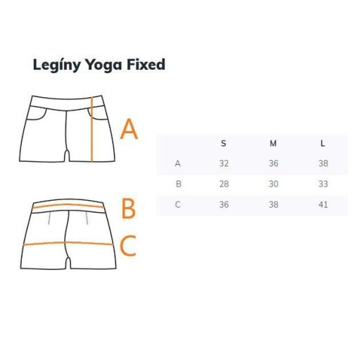 Dámske šortky Yoga Fixed využijete pri športe, vo voľnom čase aj na domáce nosenie. Šortky majú vysoký pás so širokou rebrovanou gumou, nepresvitajú a majú tvarujúce detaily, ktoré vytvárajú push-up efekt. Minimálny počet švov je u týchto kraťasov zárukou pohodlia a voľnosti pri pohybe. Pokiaľ chcete mať svoj cvičebný outfit kompletný, odporúčame k šortkám zakúpiť športovú podprsenku Yoga Rate. Zloženie: 90% polyamid, 10% spandex. Perte v práčke s podobnými farbami na 30 °C. Rozmery: Veľkosť S dĺžka: 32 cm šírka pása: 28 cm šírka bokov: 36 cm Veľkosť M dĺžka: 36 cm šírka pása: 30 cm šírka bokov: 38 cm Veľkosť L dĺžka: 38 cm šírka pása: 33 cm šírka bokov: 41 cm