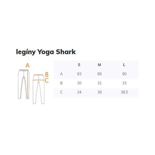 Dlhé bezšvové športové legíny Yoga Shark sú ideálnym odevom na cvičenie, jogu, pilates a ďalšie športy. Legíny majú vysoký pás so širokou rebrovanou gumou. Na lampasoch a pod zadkom sú na tkanine zosilnené zóny, ktoré slúžia na vytvorenie push-up efektu. Minimálny počet švov je u týchto legín zárukou pohodlia a voľnosti pri pohybe. Zloženie: 90% polyamid, 10% spandex. Perte v práčke s podobnými farbami na 30 °C. Rozmery: Veľkosť S dĺžka: 83 cm šírka pása: 30 cm šírka bokov: 34 cm Veľkosť M dĺžka: 86 cm šírka pása: 31 cm šírka bokov: 36 cm Veľkosť L dĺžka: 90 cm šírka pása: 33 cm šírka bokov: 38, 5 cm