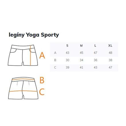 Dámske krátke legíny nad kolená Yoga Sporty využijete pri cvičení, cyklistike, inline korčuľovaní aj na domáce nosenie. Legíny majú vyšší pás a po stranách vrecká, do ktorých si môžete dať kľúčik od skrinky, gumičku do vlasov alebo napríklad vreckový k. Pokiaľ chcete mať svoj športový outfit kompletný, odporúčame k šortkám zakúpiť športovú podprsenku Yoga Feel. Zloženie: 92% polyester, 8% spandex. Perte v práčke s podobnými farbami na 30 °C. Rozmery: Veľkosť S dĺžka: 43 cm šírka pása: 30 cm šírka bokov: 39 cm Veľkosť M dĺžka: 45 cm šírka pása: 34 cm šírka bokov: 41 cm Veľkosť L dĺžka: 47 cm šírka pása: 36 cm šírka bokov: 43 cm Veľkosť XL dĺžka: 48 cm šírka pása: 38 cm šírka bokov: 47 cm
