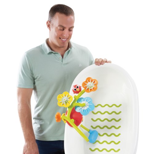 Stlačte oranžového vtáčika pre aktiváciu prúdu vody a vodných efektov na kvetoch. Bočným tlačidlom ovládajte prietok vody a rýchlosť otáčania kvetov. Otočte stonku s vtáčikom a jemne postriekajte dieťa. Začnite na nožičkách. Keď je dieťa spokojné otočte stonku a vtáčika, aby ste postrekovali vodou aj zvyšok jeho tela.
