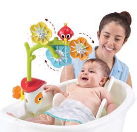 2v1 batériový senzorický vodný oblúk s farebnými kvetmi, ktoré sa otáčajú a kropia vodu, zatiaľ čo otočný vták strieka jemný prúd vody. Vytvára tak multi-senzorický fascinujúci zážitok pre najmenšie deti. Jednoduchým spôsobom je možné meniť intenzitu prietoku vody a tým zrýchľovať či spomaľovať otáčajúce sa farebné kvety.