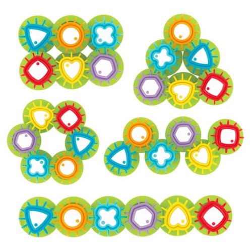 Inovatívna hračka, ktorá naučí deti farby a tvary. Ozubené tvary sa umiestňujú na flexibilnú základňu, ktorú je možné tvarovať a pretvárať v rôzne obrazce. Bez ohľadu na rozloženie základne sa budú ozubené tvary vždy točiť.