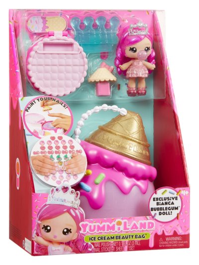 V sade v podobe zmrzliny nájdeš lehátko pre bábiky s leskami na pery, ktoré slúžia aj ako vanička na namáčanie nechtov. Obsahuje lak na nechty, samolepky, pilníček, oddeľovače prstov a bábiku Bianca Bubblegum s príveskom.