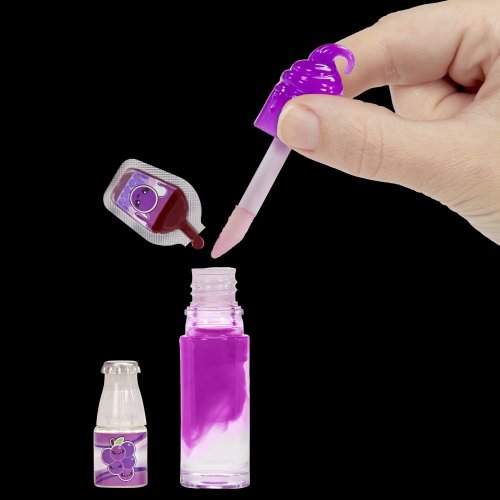 Vyrob si svoj vlastný lesk na pery s roztomilou bábikou. 1. Otvor tubu s leskom na pery. 2. Pridaj do tuby vôňu z fľaštičky na limonádu. 3. Pridaj farbu z téglika na Bubble tea. 4. Tubu s leskom zatvor a poriadne ju pretrepte. V sérii môžeš vyberať zo 6 vôní a vytvoriť viac ako 50 kombinácií. Roztomilá voňavá bábika má outfit a topánky, ktoré môžeš zložiť. Bábiku aj lesk na pery si môžeš vziať na cesty, stačí spojiť s príveskom na kľúče. Veľkosť bábiky cca 10 cm.