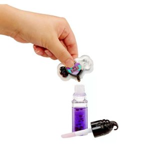 1. Otvor tubu s leskom na pery. 2. Pridaj do tuby farbu. 3. Sleduj, ako kvapky farby vytvárajú efekt lávovej lampy. V sérii môžeš vyberať z 2 vôní. Roztomilá voňavá bábika má outfit a topánky, ktoré môžeš zložiť. Bábiku aj lesk na pery si môžeš vziať na cesty, stačí spojiť s príveskom na kľúče.