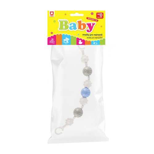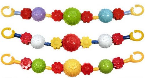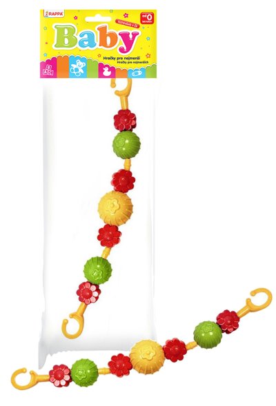 Hrkajúca zábrana na kočík s otočnými farebnými guličkami a kvietkami je určený pre tých najmenších! Na oboch koncoch sa nachádzajú oká na uchytenie ku kočíku. Farby produktu sa môžu líšiť od vyobrazenia. Táto roztomilá a navyše praktická vecička urobí radosť každému dieťatku!