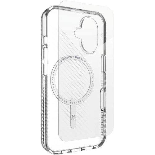 ZAGG Luxe Snap na Apple iPhone 16, Bundle + tvrdené sklo, priehľadná Tento set kombinuje prémiové puzdro Luxe Snap a ochranným sklom Glass Elite, ktoré spoločne vytvoria bariéru proti každodenným nárazom a škrabancom. Puzdro Luxe Snap je vyrobené z vysoko odolného grafénu a je testované tak, aby vydržalo pády až z 3 metrov. Zároveň je neuveriteľne tenké a ľahké, takže sa váš telefón bude skvele držať v ruke. Vďaka podpore MagSafe môžete svoj iPhone pohodlne nabíjať bez nutnosti vyberania puzdra a zároveň využívať širokú škálu príslušenstva MagSafe. Puzdro je navyše z 94% vyrobené z recyklovaných materiálov.
