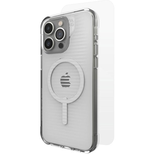 Set ochranného krytu kompatibilného s MagSafe a ochranného skla. Vyrobený z 95% recyklovaných materiálov. Pre maximálnu odolnosť bol zosilnený grafénom, jedným z najpevnejších známych materiálov na Zemi. Zariadenie ochráni pri pádoch z výšky až 3 metrov.