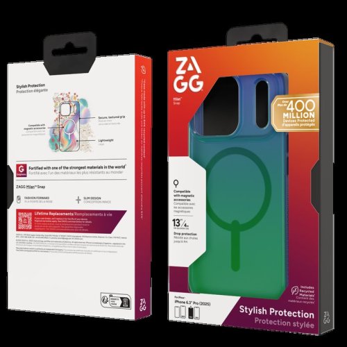 Ochrana pri pádoch z výšky až 4 metrov Kryt Milan Snap vaše zariadenie ochráni pri pádoch z výšky až 4 metrov. Zosilnený grafénom Kryt Milan Snap bol zosilnený grafénom, jedným z najsilnejších známych materiálov na Zemi. Grafén je materiál, ktorý je tvrdší ako diamant, pružnejší ako guma a približne 200× pevnejší ako oceľ. Grafén je vysoko vodivý, vďaka čomu umožňuje odvod tepla. Tento materiál je využívaný v letectve, kozmonautike, pri výrobe profesionálneho športového a vojenského vybavenia atď. Štíhle prevedenie Aj napriek vysokému stupňu ochrany, ktorý kryt zariadenia ponúka, nepridáva Milan Snap zariadenie zbytočne na objeme. Vyrobený z recyklovaných materiálov Spoločnosť ZAGG sa snaží ísť cestou udržateľnosti, preto je ochranný kryt vyrobený až zo 74 % recyklovaných materiálov. Kompatibilita s MagSafe Kryt je kompatibilný s MagSafe as väčšinou bezdrôtových nabíjačiek. Antimikrobiálna zložka Milan Snap disponuje antimikrobiálnou zložkou, ktorá ho chráni pred baktériami spôsobujúcimi degradáciu materiálu a zápach.
