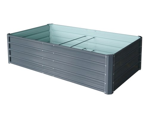 Vyvýšený záhon plechový. S praktickou výškou pre pohodlné sadenie a ľahkú montáž vďaka zosilneným kovovým rohom. So 6 vnútornými výstužami pre vyššiu pevnosť. Materiál: panely z pozinkovaného oceľového plechu s povrchovou úpravou s hrúbkou 0,3 mm, rohové prvky z pevnej ocele s hrúbkou 0,6 mm. Rozmery: dĺžka 180 cm, šírka 90 cm, výška 47 cm. Objem: 760 l. Farba: antracitová.