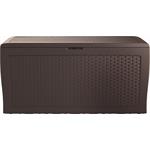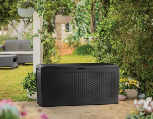 Hnedý záhradný box Keter Samoa Rattan ponúka kapacitu 270 l , takže poslúži ako perfektný úložný priestor pre vankúše a ostatné doplnky vašej záhrady, terasy či pergoly. Zabudovaný podlahový panel chráni obsah skrine proti vode, bahnu, prachu a ďalším nečistotám . Zloženie skrine zvládnete počas krátkej chvíle a to bez použitia akéhokoľvek náradia. Box má vstavané kolieska pre ľahký prenos a jednoduchá je aj údržba tejto skrine, pretože vám stačí handrička s vodou a pár krátkych chvíľ.