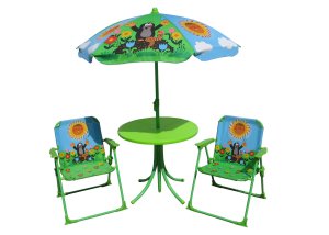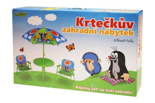 Súprava nábytku s motívom Krtka spestrí deťom ich šantenie na záhrade! Skvelú záhradnú súpravu deti naozaj skvele využijú po celé letné obdobie, pri stolčeku môžu deti zjesť svoju desiatu, pripraviť hostinu pre svojich kamarátov, a to pre tých op.
