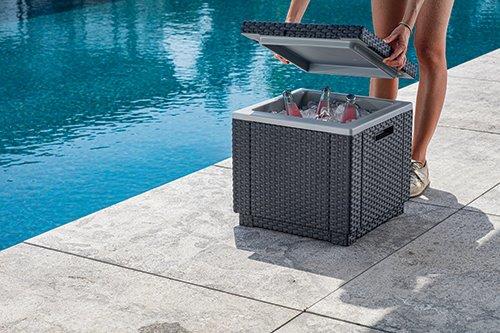 Záhradný box Ice Cube značky Keter má multifunkčné využitie. Nielenže zastane funkciu praktického odkladacieho stolíka , zároveň ho použijete ako ďalšie miesto na sedenie pod vašou pergolou. Máte chuť na vychladený nápoj? Zložte veko, uložte do stolíka fľaše s limonádou, džúsom alebo pivom a udržte ich studené bez toho, aby ste museli neustále vstávať a chodiť do domu k chladničke.