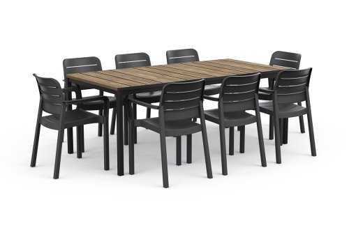Vďaka unikátnemu povrchu DecoCoat odolá stôl nepriaznivým poveternostným vplyvom a poškriabaniu. Zároveň si zachováva svoju farbu. Textúra navyše pripomína skutočné drevo .