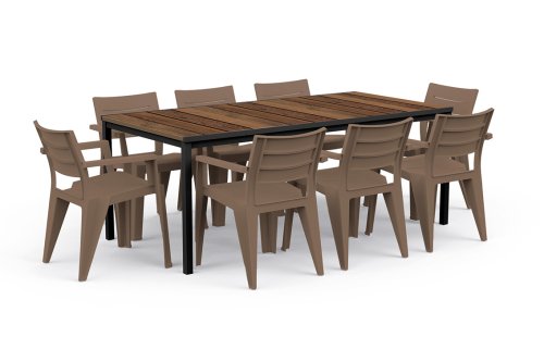 Vďaka unikátnemu povrchu DecoCoat odolá stôl nepriaznivým poveternostným vplyvom a poškriabaniu. Zároveň si zachováva svoju farbu. Textúra navyše pripomína skutočné drevo .