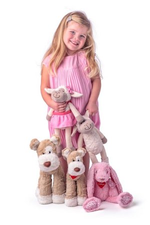 Volám sa STELLA a mám sestričku ELLA – sme obe veľké kamarátky so zajačicou JULIOU. Užívame si svoje veľké kamarátstvo naplno a spájajú nás rovnaké vlastnosti – sme milé, jemné, máme slušné vychovanie – teda vzorné zajačie slečny, ALE! … túžime realizovať tajné sny - byť uličnice a lúmpačiť s kamarátmi. Preto budeme s láskou čakať na teba a robiť ozdobu tvojmu doma. Pochádzame z Holandska. Rozmer: 38 cm výška Vek: +0