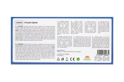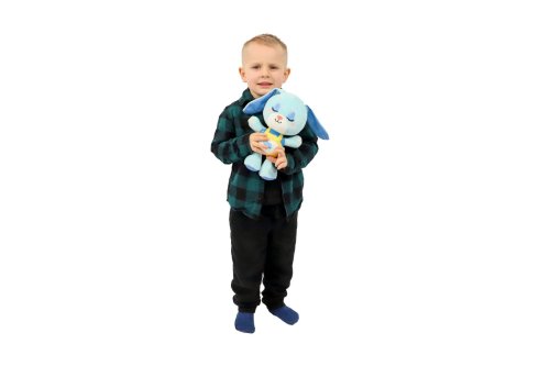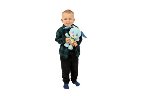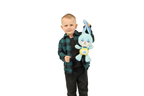 Zajiček je vyrobený z hebkého plyšu a má plastový panel so svetelnými a zvukovými efektmi. Po stlačení tlačidla zahrá jemnú melódiu, ktorá upokojí dieťa a podfarbí príjemnú atmosféru tlmeným svetielkom. Vďaka napájaniu na batérie je možné hračku ľahko používať kdekoľvek – v postieľke, kočíku aj na cestách. Rozmery balenia 22 x 30 x 11 cm Vhodné pre deti od 6 mesiacov