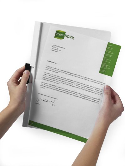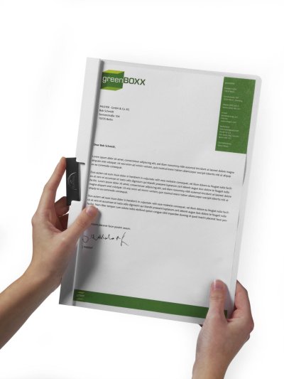 • Systém DURACLIP®: Vytiahnite klip do strany, vložte dokumenty a zatlačte klip späť - jednoduché! Unikátny odpružený oceľový klip sa prirodzene prispôsobuje počtu vložených listov, ale nedochádza k jeho rozťahovaniu. Preto aj pri následnom vložení menej listov sa klip menšiemu počtu prispôsobí a perfektne ich drží na svojom mieste.
