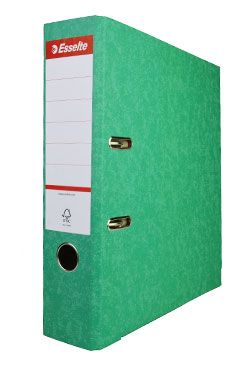 Mramorový papierový pákový zakladač so zelenými doskami a chrbtom.
