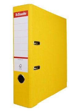 Mramorový papierový pákový zakladač so žltými doskami a chrbtom.