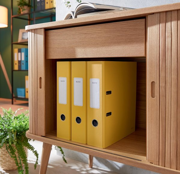 • Značkový rad Leitz Cosy vám umožní cítiť sa ako doma, nech už vás váš pracovný deň zavedie kamkoľvek. Vďaka minimalistickému dizajnu a lákavej matnej povrchovej úprave pridáte do svojho pracovného priestoru štýl a farbu. Unikátna páková mechanika s otvorením o 180°, ktorá umožňuje o 50% širšie otvorenie ao 20% rýchlejšiu prácu s zakladačom. Tento zakladač s hebkým povrchom je perfektným doplnkom do vášho domova alebo kancelárie, čo zaisťuje, že budete po celý deň uvoľnení a produktívni.