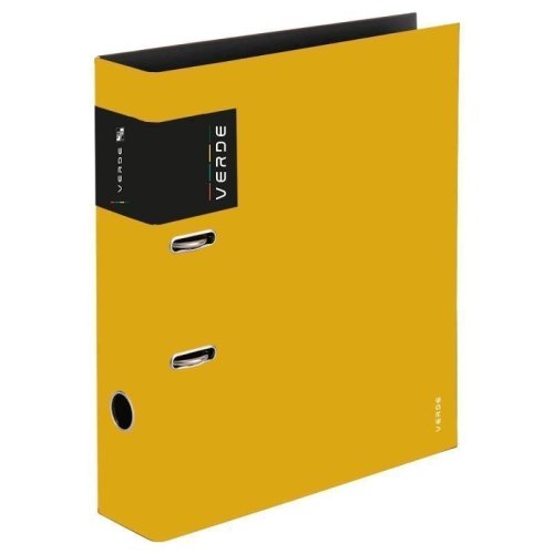 Pákový lamino zakladač z kolekcie Verde v horčicovom prevedení s chrbtom so šírkou 7 cm a prstokrúžkom - efektívny a praktický spôsob, ako organizovať a uchovávať dôležité dokumenty Radokrúžky umiestnené v …