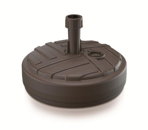 Okrúhly plastový stojan na slnečník s efektom imitácie drevených dosiek. Po naplnení vodou či pieskom zaistí slnečníku stabilitu. Priemer: 39 cm, výška: 13 cm.