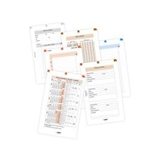 Týždenná sada A7 obsahuje: diár, plánovací kalendár, týždenný plán dvojstranný, nezabudni, kľúčové oblasti, telefónny zoznam, poznámkové listy