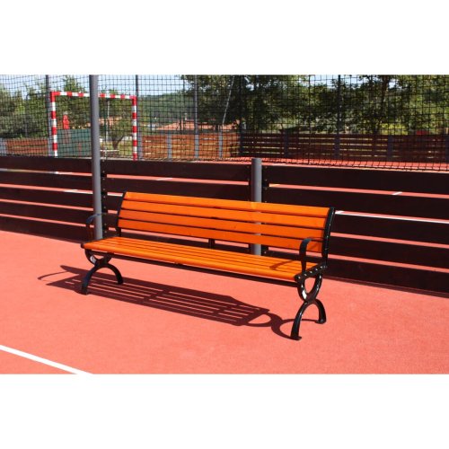 Ľahká a elegantná lavička s operadlom na vonkajšie aj vnútorné použitie. Vhodná na príjemné posedenie na záhrade, balkóne, terase, ale skvele poslúži aj ako miesto odpočinku športovcov pri ihrisko alebo kurte. Kovové, čierno lakované bočnice sú ošetrené antikoróznou úpravou, laty z masívneho gáfrového dreva sú ošetrené základnou impregnáciou a na vonkajšej strane sedacie a oporné časti sú natreté lesklým exteriérovým lakom. Lavičku dodávame v rozloženom stave. Návod na montáž na stiahnutie vpravo vedľa popisu tovaru av inštruktážnom videu. V prípade záujmu je možné dodať lavičku v už zmontovanom stave za príplatok 500 Kč. Upozornenie: Povrch dreva nie je odolný proti dlhodobému pôsobeniu poveternostných vplyvov ako je trvalejší dážď alebo mráz. Pokiaľ bude lavička dlhodobo umiestnená v exteriéri odporúčame ju ošetriť ďalším špeciálnym exteriérovým náterom. Parametre: -celkové rozmery lavičky: dĺžka x šírka x výška : 180 x 50 x 72 cm -čistý rozmer sedacej plochy, dĺžka x šírka: 173 x 36 cm -čistý rozmer opornej plochy: dĺžka x šírka: 173 x 30 cm -výška sedacia plochy od zeme: 38 cm - výška chrbtovej časti od zeme: 72 cm - rozmer drevených lát: dĺžka x šírka x výška: 175 x 6 x 3 cm - rozmer kovových bočníc: šírka x výška x hrúbka: 50 x 72 x 3 cm - hmotnosť: 19 kg -nosnosť 250 kg