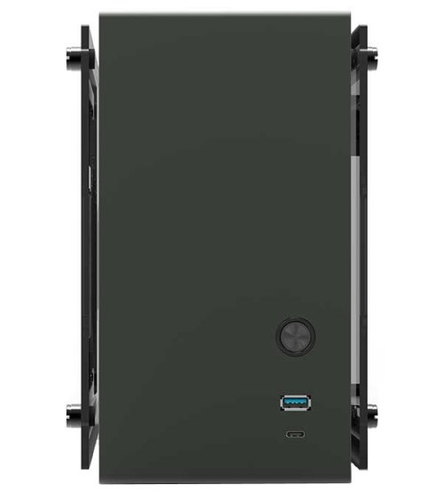 Štýlová skriňa formátu Mini ITX s bočnicami z akrylového skla ponúka dve 2,5" pozície pre SSD disky. Na prednej strane sa nachádza jeden USB 3.0 port a jeden port USB-C . V skrini je dostatok priestoru pre chladič CPU do výšky až 60 mm a grafickú kartu s dĺžkou 295 mm.