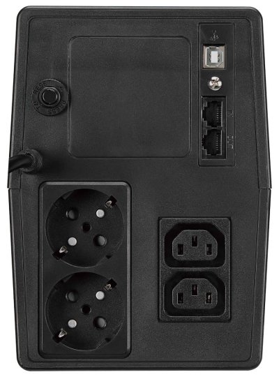 VÝSTUP Kapacita výstupného výkonu [W]: 600 Kapacita výstupného výkonu [VA]: 1000 Výstupné napätie [V]: 220 Topológia: Line-interactive Typ krivky: Simulovaná sínusoida Výstupné prípojky: 2x Schuko, 2x IEC C13