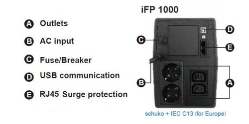 Hlavné vlastnosti: *Dotykový display LCD *Ochrana RJ45 *Rada iFP je vybavená automatickou reguláciou napätia a tým znižuje dopad nestabilného napätia na zariadenie. *Kompaktná veľkosť *Vynikajúce mikroprocesorové riadenie zaručuje vysokú spoľahlivosť *Stabilizácia napätia *Automatické zapnutie pri obnove dodávky elektrickej energie *automaticky sa nabíja po obnovení napájania *Dobíjanie aj vo vypnutom režime *Funkcia studeného štartu (bez pripojenia do elektrickej siete)