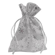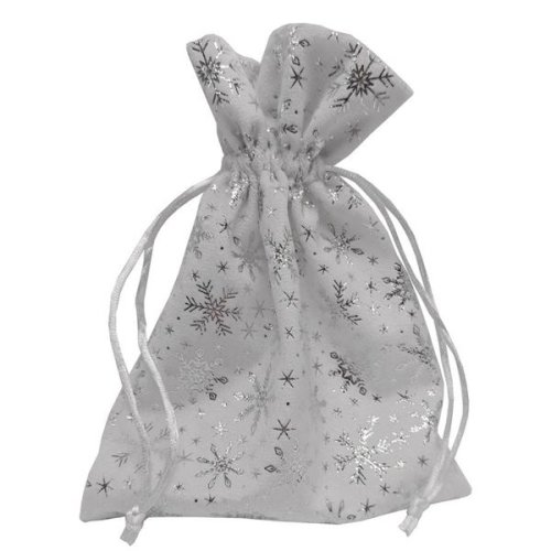 Zamatové biele vrecko, strieborné vločky, 20 x 15 cm