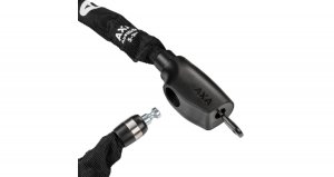 Kvalitný reťazový zámok navrhnutý na krátkodobé alebo strednodobé parkovanie bicykla. Zamykanie bez nutnosti použitia kľúča a prachová krytka proti vniknutiu nečistoty do zamykacieho mechanizmu. Reťaz je vyrobená z tvrdenej ocele a je uložená v odolnom polyesterovom obale. Dĺžka reťaze je 90 cm, zatiaľ čo jej priemer je 5 mm.
