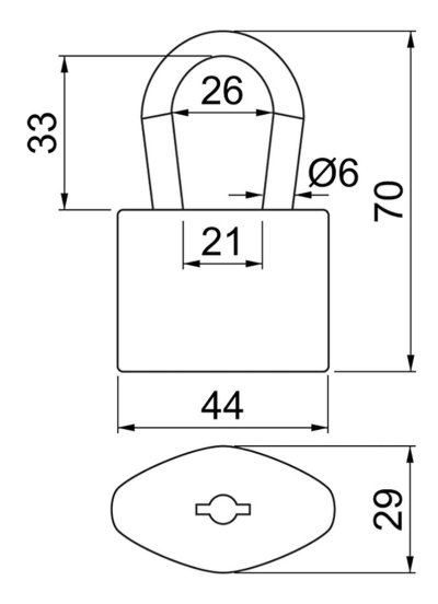 Zámok visiaci 12.45, 3 kľúče, vyberateľný strmeň.