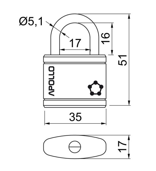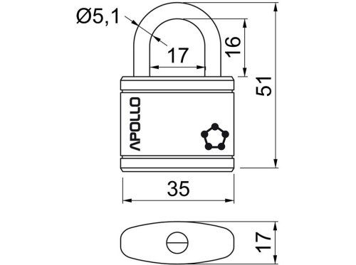 Zámok visiaci APOLLO 35 3 kl. ČIER.