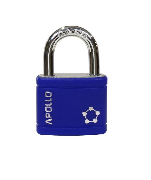 Oceľový visiaci zámok. Práškovo lakované teleso zámku s plastovým krytom. Strmeň zámku HARDENED, istený v dvoch bodoch. Zamykanie bez kľúča – zatlačením strmeňa. Vložka zámku s 5 odpruženými stavítkami.