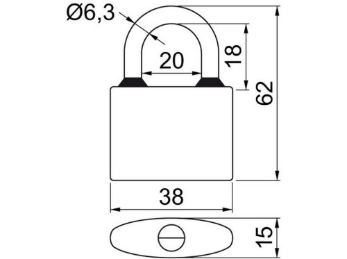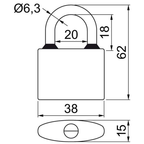 Visiaci zámok OVAL 38, 3 kľúče na rovnaký uzáver RICHTER.