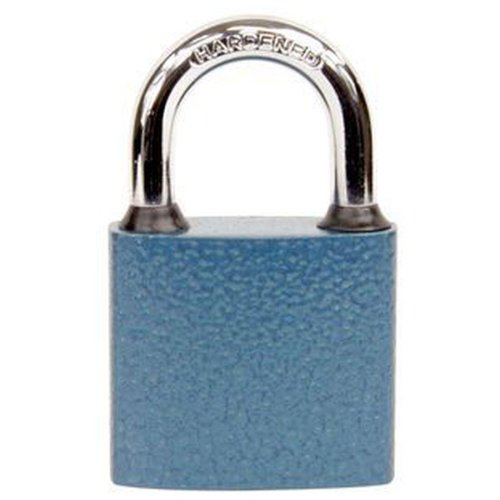 Klasický liatinový zámok. Štandardný strmeň HARDENED, istený v dvoch bodoch. Gumové krúžky chrániace liatinové teleso proti prieniku vody. Zamykanie bez kľúča – zatlačením strmeňa. Možnosť spoločného uzáveru - SU. Vložka zámku s 5 odpruženými stavítkami. Povrchová úprava modrý komaxit. Balenie vr. 3 ks kľúčov.