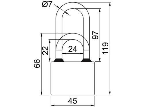 Klasický liatinový zámok. Štandardný alebo predĺžený (PL) strmeň HARDENED, istený v dvoch bodoch. Gumové krúžky chrániace liatinové teleso proti prieniku vody. Zamykanie bez kľúča – zatlačením strmeňa. Možnosť spoločného uzáveru - „SU“. Vložka zámku s 5timi odpruženými stavítkami. Povrchová úprava: modrý komaxit Hmotnosť netto: 0,13 kg, PL 0,15 kg Balenie vr. 3 ks kľúčov.