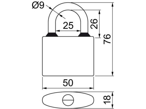 Klasický liatinový zámok. Štandardný strmeň HARDENED, istený v dvoch bodoch. Gumové krúžky chrániace liatinové teleso proti prieniku vody. Zamykanie bez kľúča – zatlačením strmeňa. Možnosť spoločného uzáveru - SU. Vložka zámku s 5 odpruženými stavítkami. Povrchová úprava modrý komaxit. Balenie vr. 3 ks kľúčov.