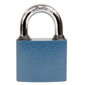 Klasický liatinový zámok. Strmeň HARDENED, istený v dvoch bodoch. Gumové krúžky chrániace liatinové teleso proti prieniku vody. Zamykanie bez kľúča – zatlačením strmeňa. Vložka zámku so 6timi odpruženými stavítkami. Povrchová úprava: modrý komaxit Hmotnosť netto: 0,44 kg Balenie vr. 3 ks kľúčov.