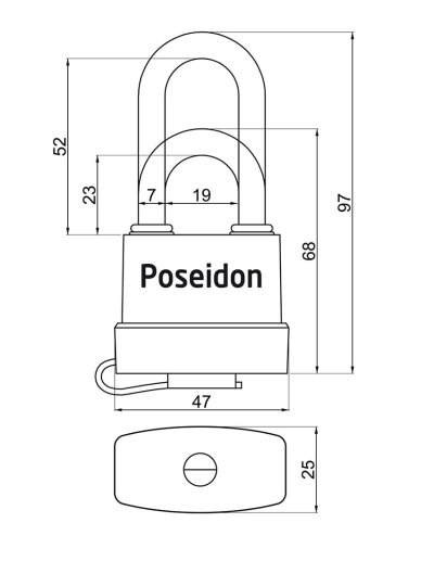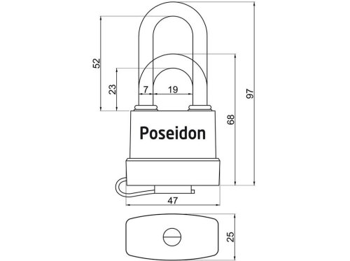 Zámok visiaci POSEIDON 40 predĺžený 3 kl. vodeodolný s PH prekrytom.