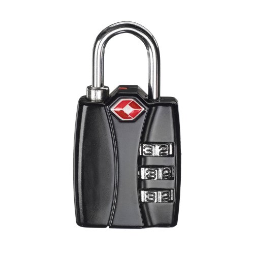 Čierny bezpečnostný visiaci zámok na 3-miestny číselný kód vhodný pre cestovanie lietadlom. Vybavený doplnkovým odomykaním TSA na otvorenie pri colnej kontrole bez poškodenia zámku alebo batožiny.