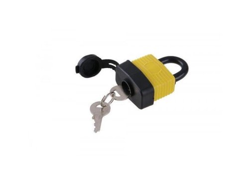 Oceľové telo je potiahnuté plastom pre maximálnu odolnosť proti vode a vlhkosti. Oblúk z tvrdenej ocele je potiahnutý plastom pre lepšiu odolnosť proti prerezaniu.
