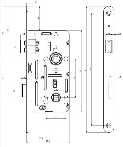 Zámok zadlabací 190/140/20 72/80 L WC6.