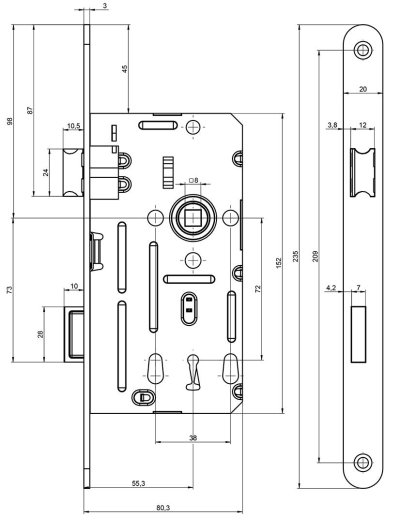 Zámok zadlabací 190/140/20 - 72/80 P obyčajný kľúč.