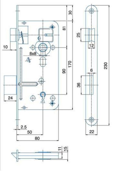 Zadlabací zámok obyčajný 536A dvojzápadový bez prevodu je univerzálny na pravé aj ľavé dvere.
